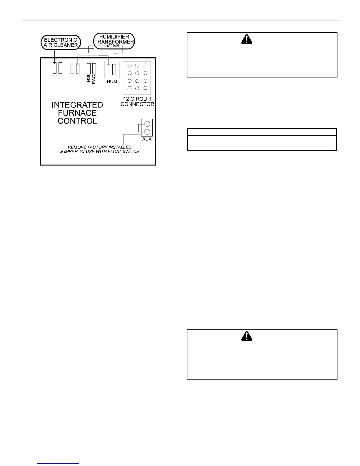 wiring to the inside of the furnace, the wiring must conform to all