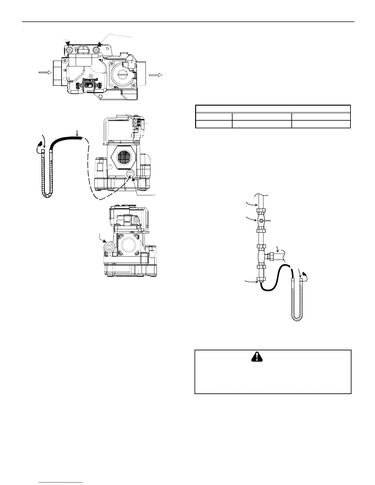 NOTE: If measuring gas pressure at the drip leg or Honeywell