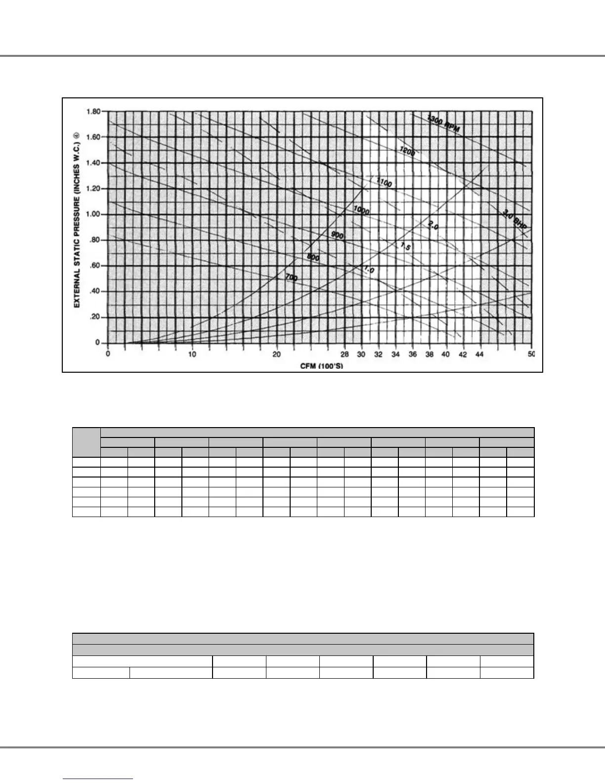 Table includes all internal pressure drops including cabinet losses. See Pressure Drops table that must be considered as part of