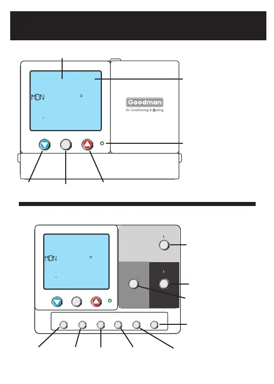 Goodman TSTATG4272 - Thermostat Interface Overview; Backlit LCD Display, Front Panel, and Hidden Buttons