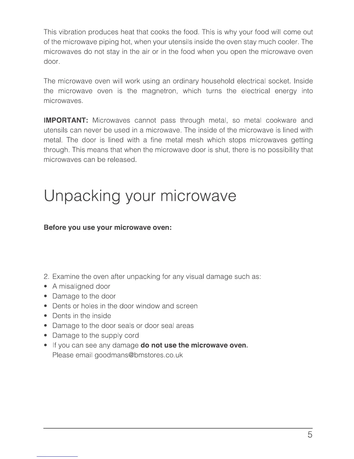 Goodmans 295959 - Unpacking and Pre-Use Inspection