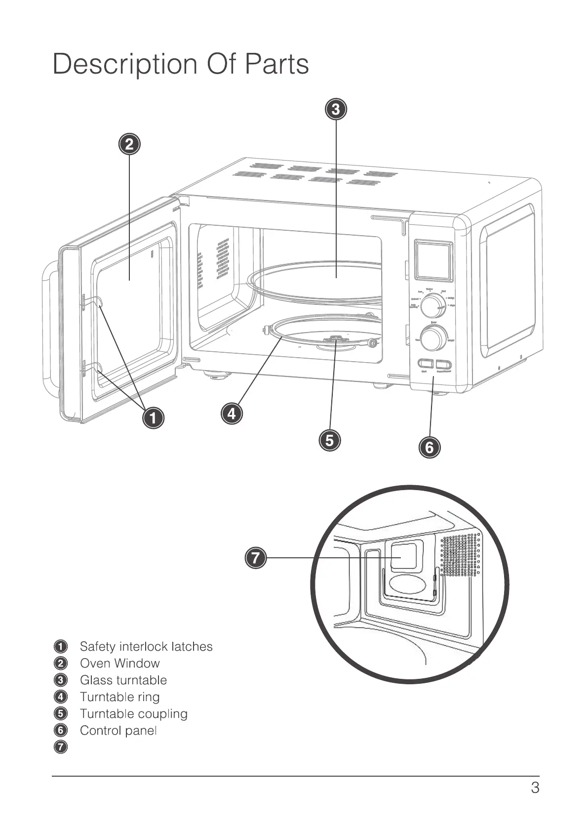 Goodmans 305820 - Description Of Parts; Safety Interlock Latches; Oven Window; Glass Turntable