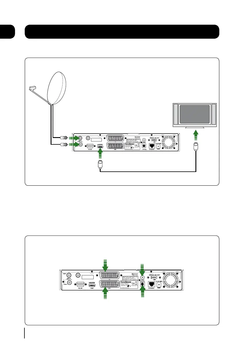Connect two RG6 co-axial cables fitted with ‘F’ type connectors from your satellite dish to the ‘TUNER1’