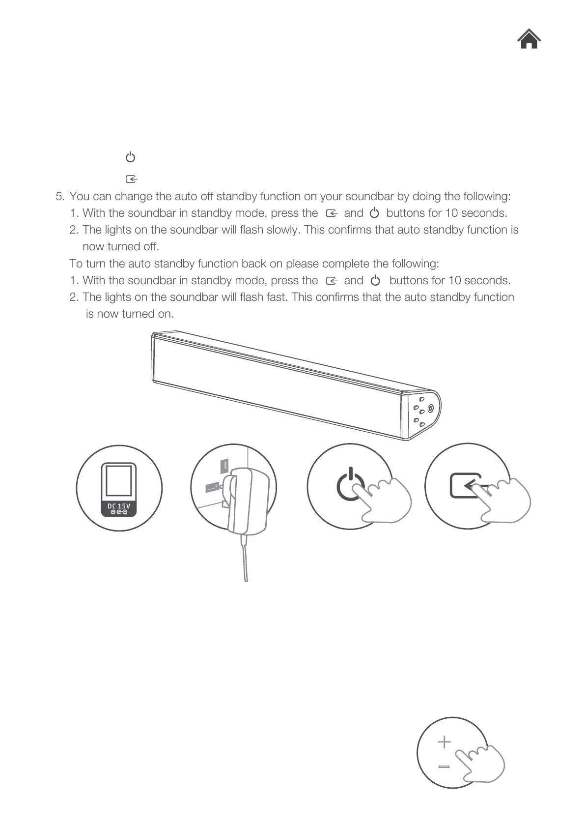 5. You can change the auto off standby function on your soundbar by doing the following: