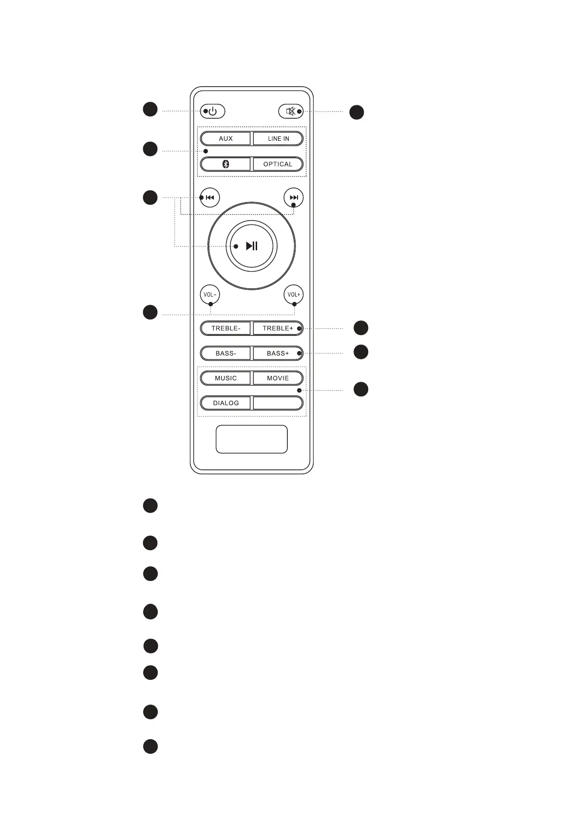 Press to select BLUETOOTH/LINE IN/AUX/OPTICAL mode.