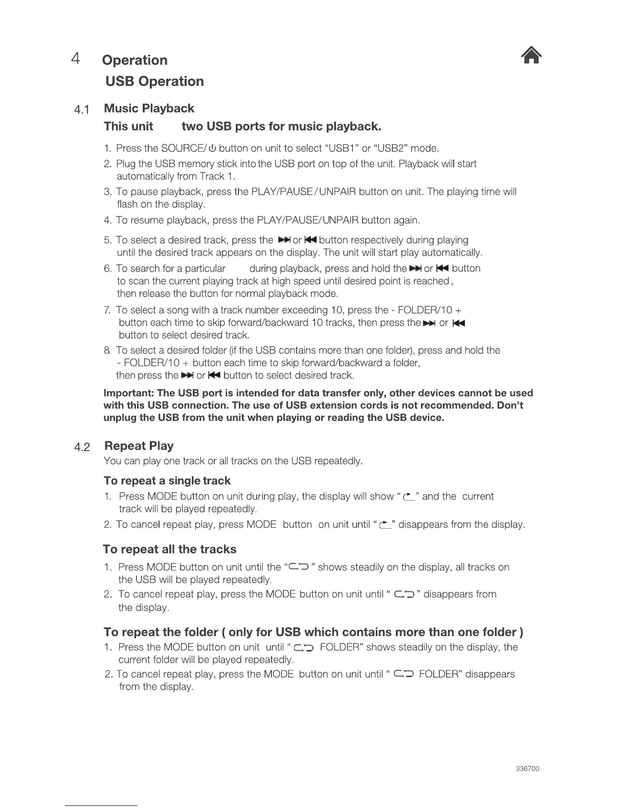 Goodmans 336700 - Operation; Music Playback; Repeat Play