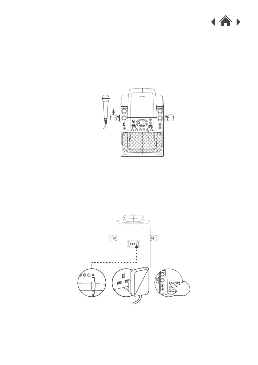 Press the POWER ON/OFF button on the front of the Karaoke Machine.3.