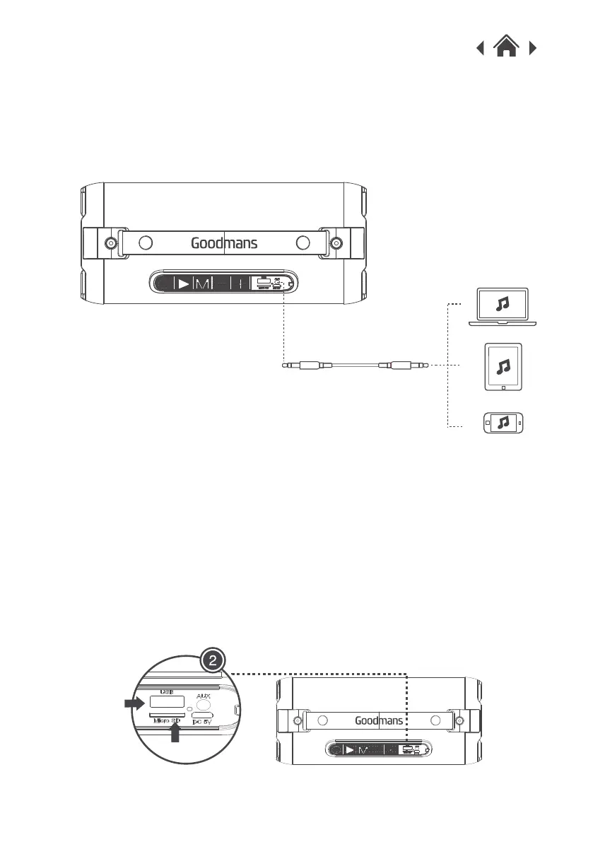 2.Insert a USB/TF card (not included) into the USB port or TF