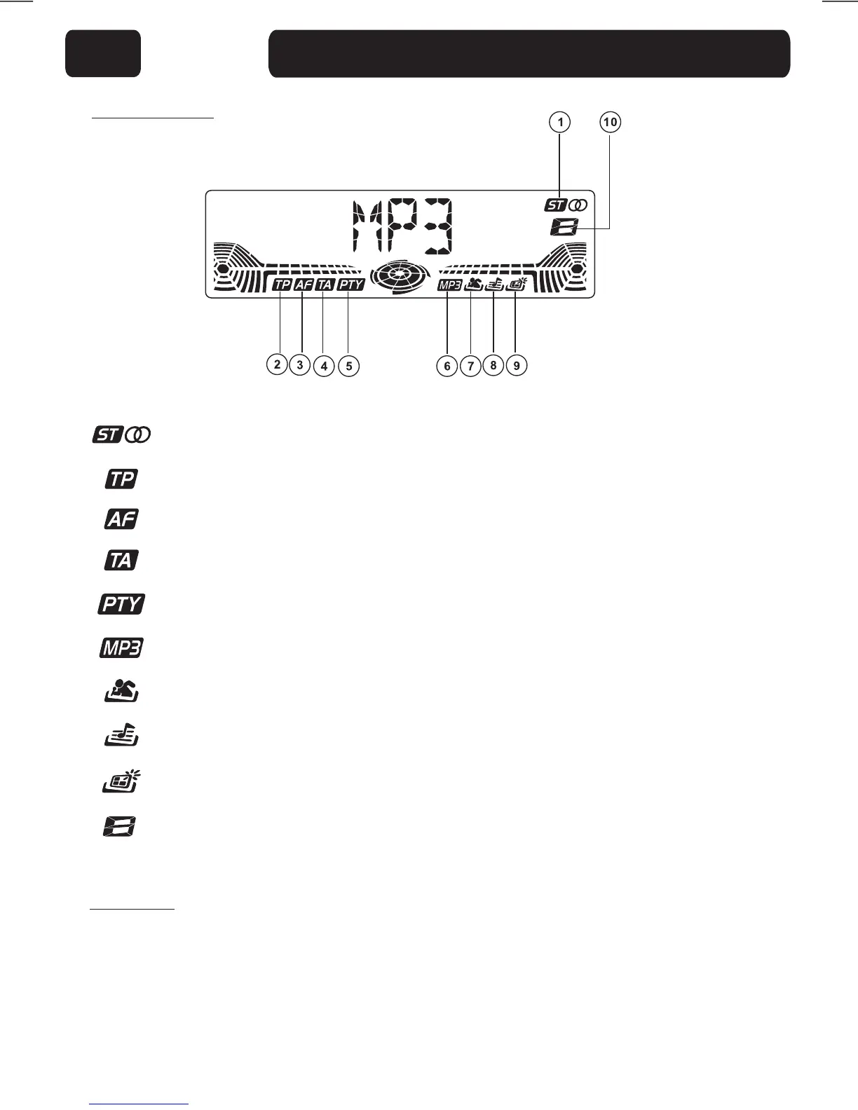 6. MP3 : Mp3 disc playing indicator