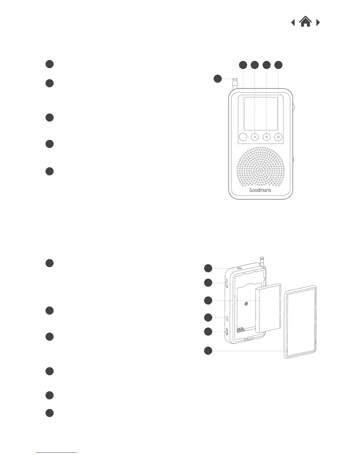 Press and hold to switch on/off the radio,
