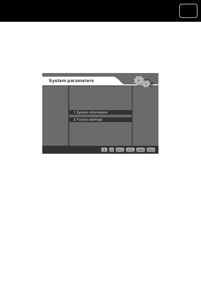 This menu gives you the receiver system parameters (settings) and