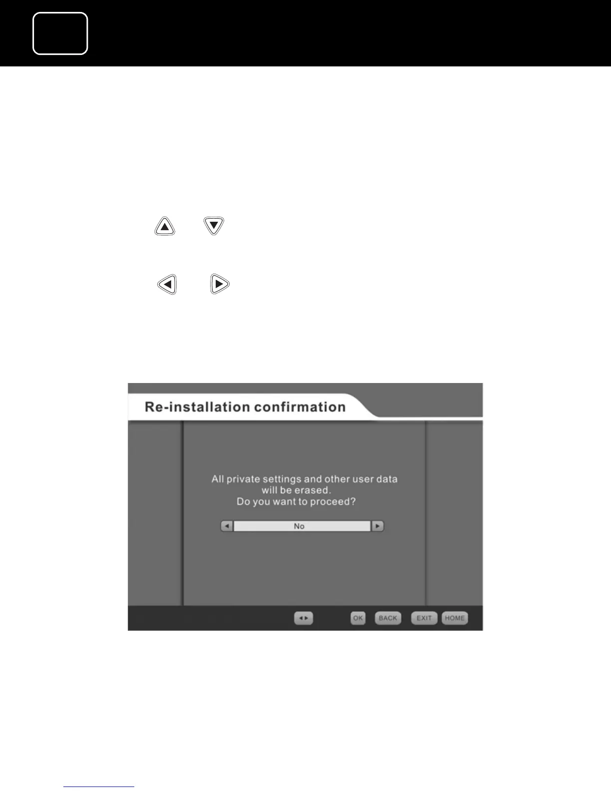 4 Press the ‘OK’ button. The receiver will reset and the welcome