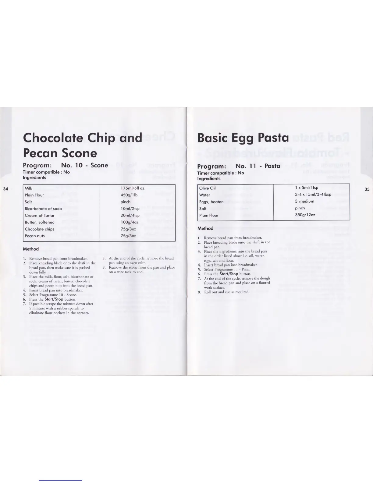 Goodmans GHB161A - Chocolate Chip and Pecan Scone Recipe; Basic Egg Pasta Recipe