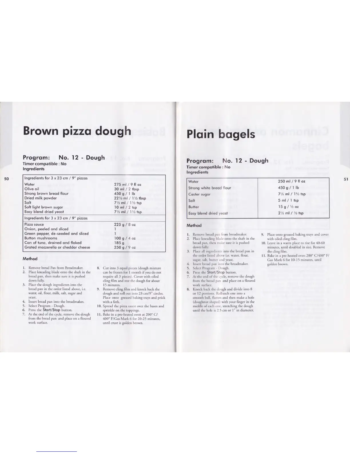 Goodmans GHB161A - Brown Pizza Dough Recipe; Plain Bagels Recipe