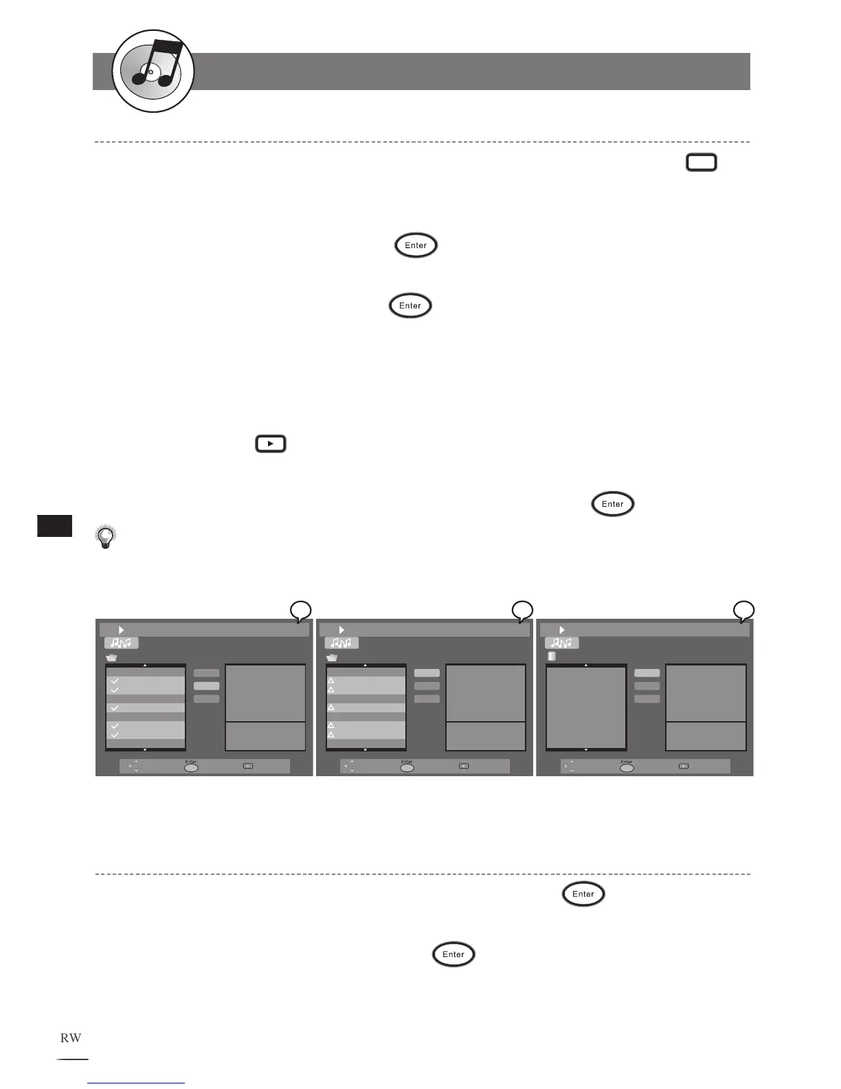 Triangle appears next to all of the music tracks on the file list. Use / to