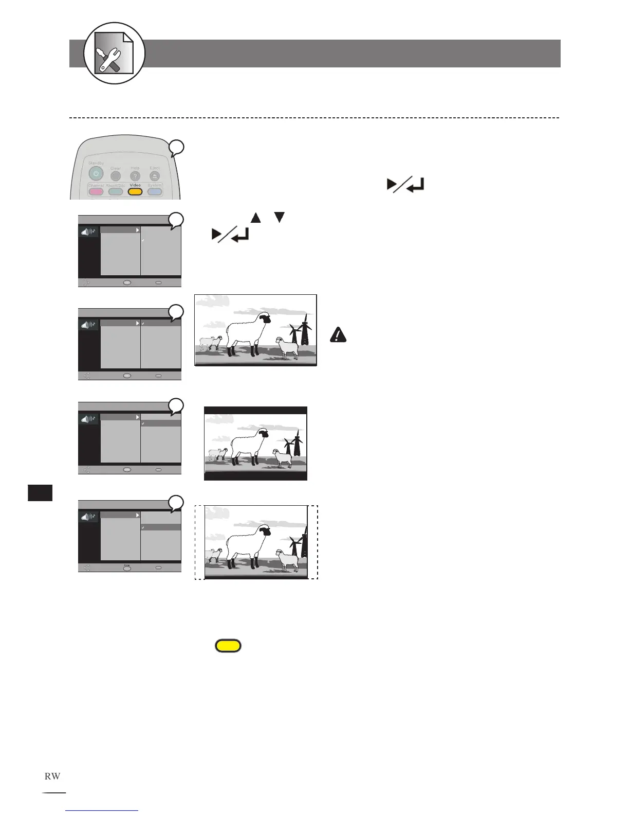 The kind of TV set (4:3 or 16:9) connected to this DVD Recorder can be selected.