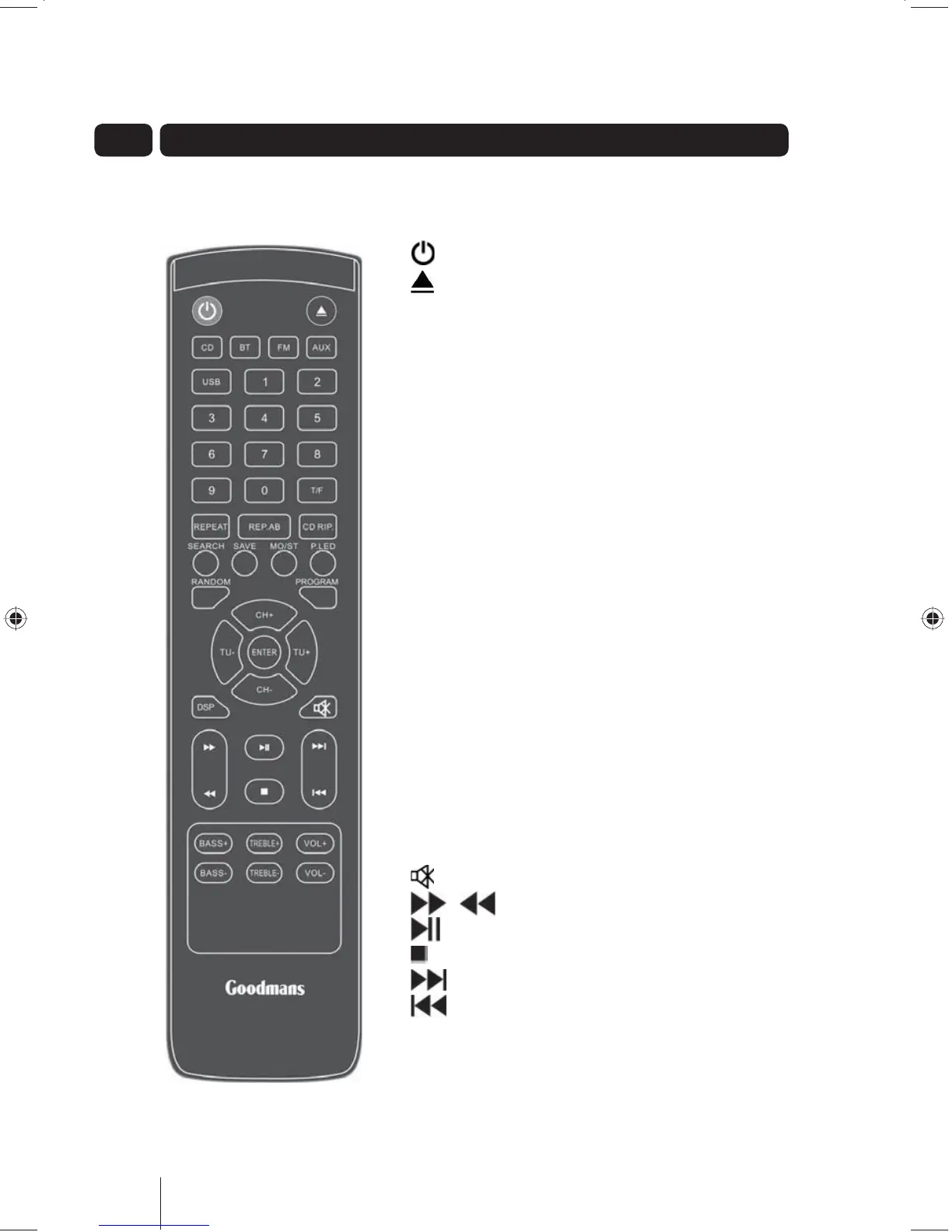 BT - Switches the Mini Stereo System to Bluetooth mode.