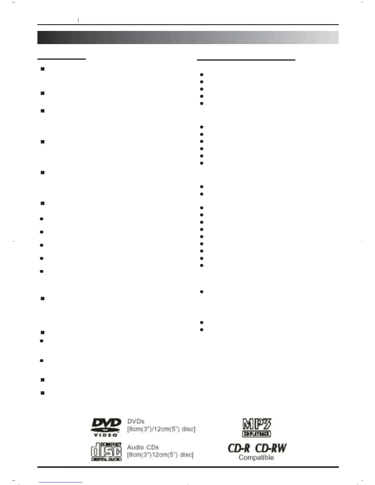 Disc formats supported by this player