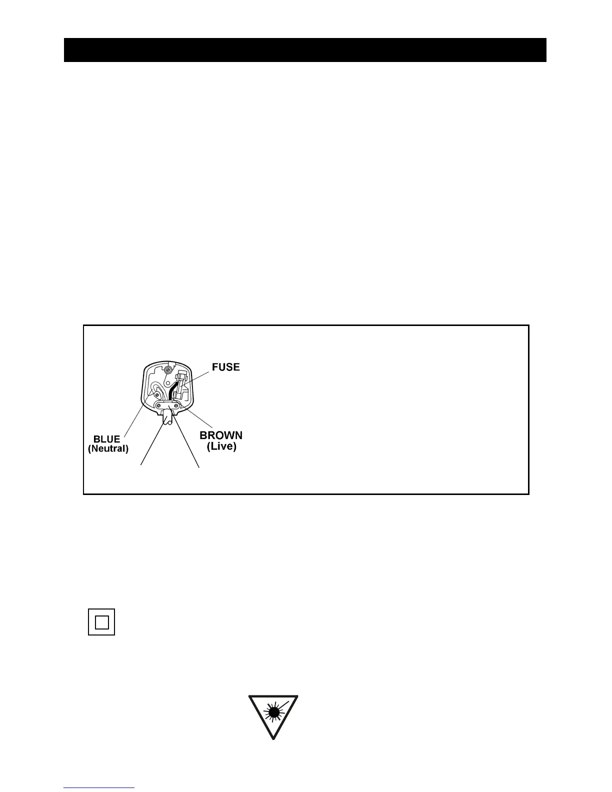 4. CAUTION: Under no circumstances should the discarded plug be inserted into the mains