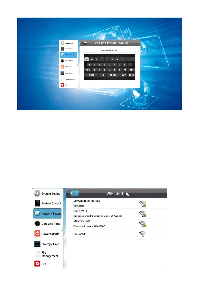 When the terminal works in WIFI mode, the wireless network can be set this menu