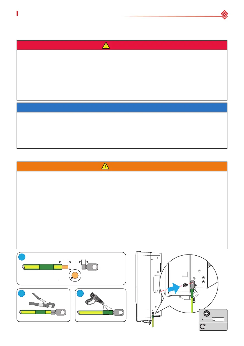 • Make sure that all the grounding points on the enclosures are equipotential connected