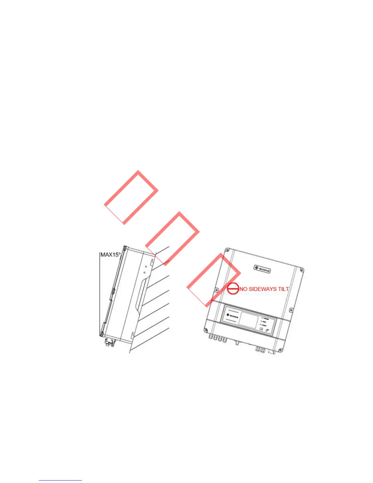 ` Install vertically or tilted backward by max 15°. The device