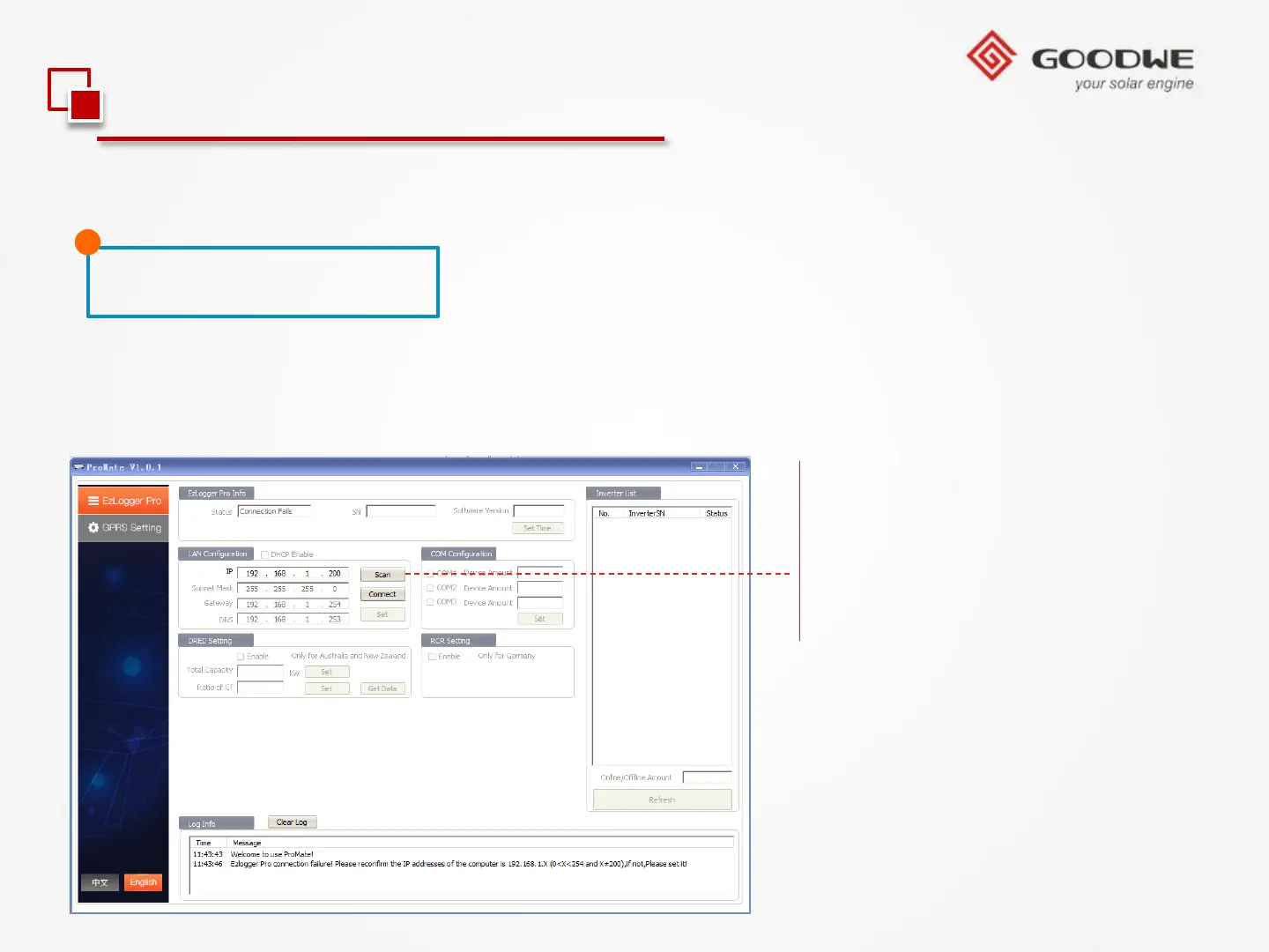 EzLogger Pro starts with dynamic IP as default , the user only needs to connect