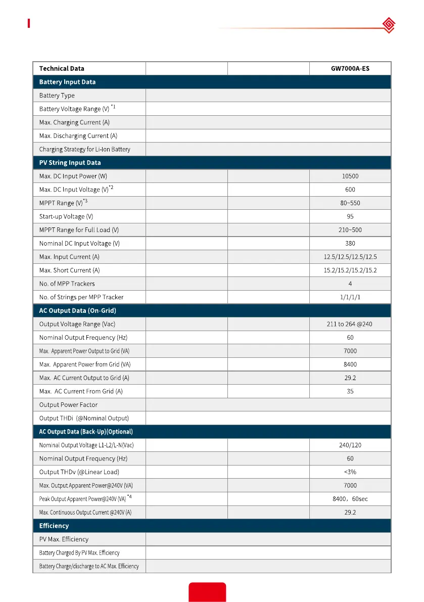 Goodwe GW7600A-ES - Technical Parameters; Inverter Specification