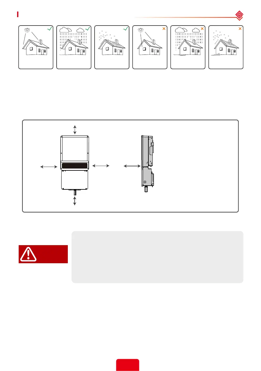 Rule 9. Leave enough space around the inverter according to the below gure for natural heat