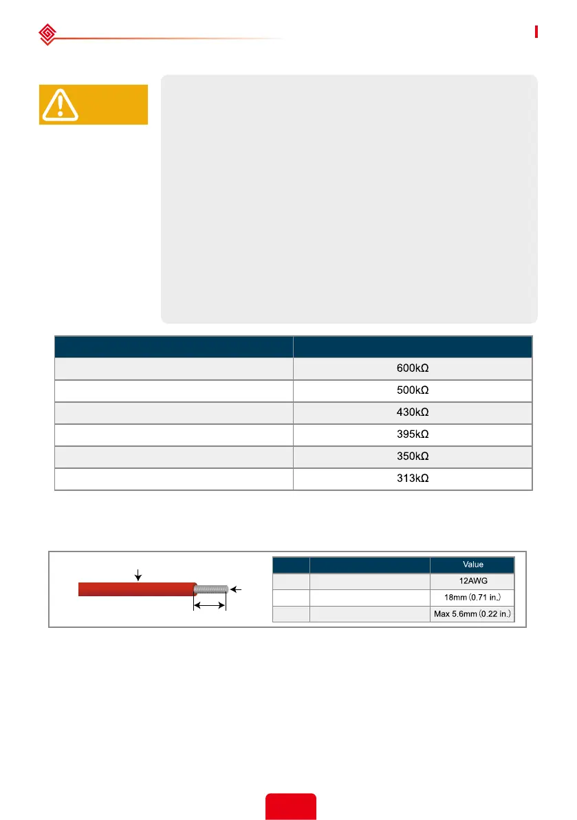 • Pour la résistance minimale à l’isolement au sol de la chaîne PV,