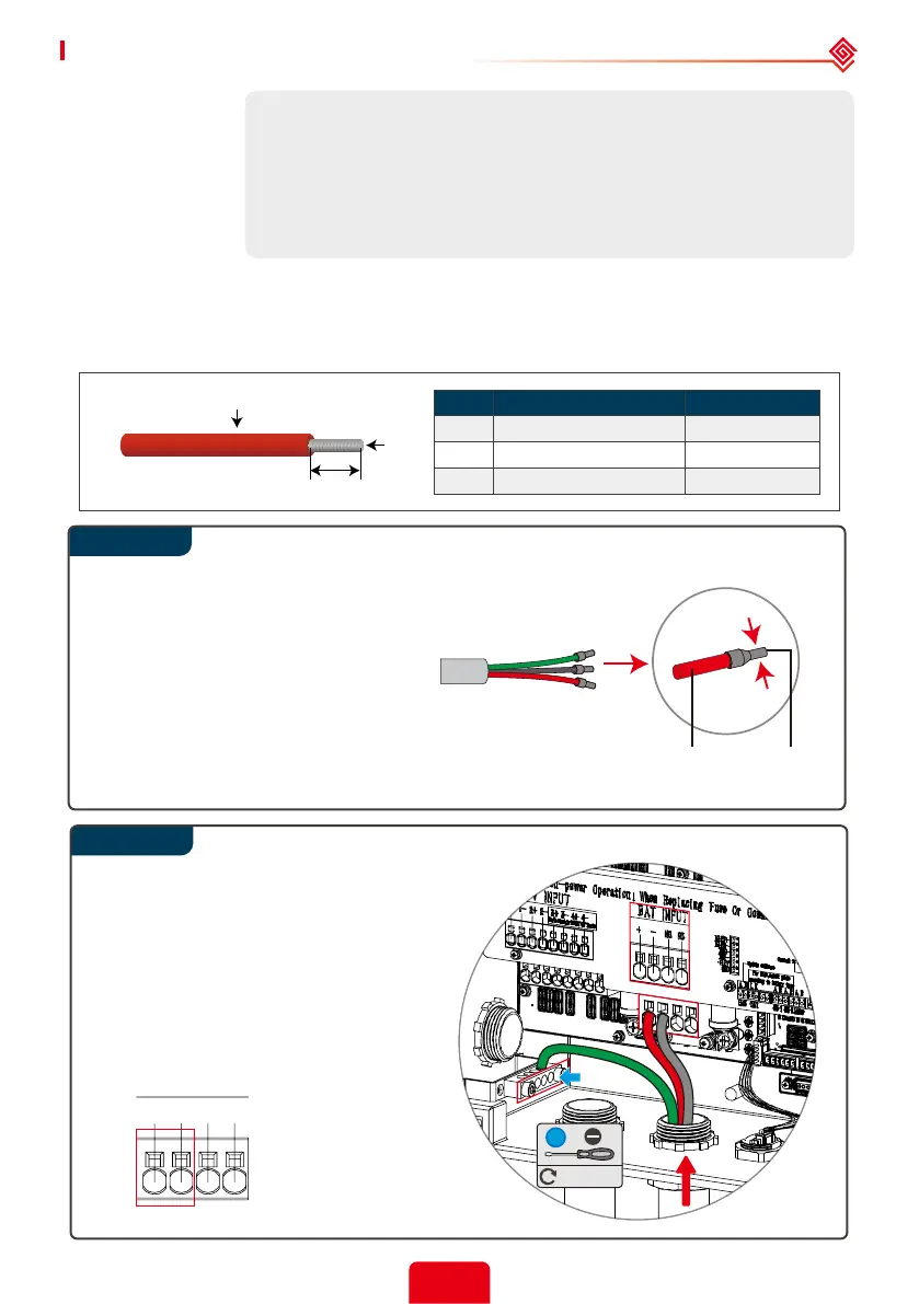 The maximum battery current is 50A; please use 90°C, #6 AWG copper building wire (e.g.,