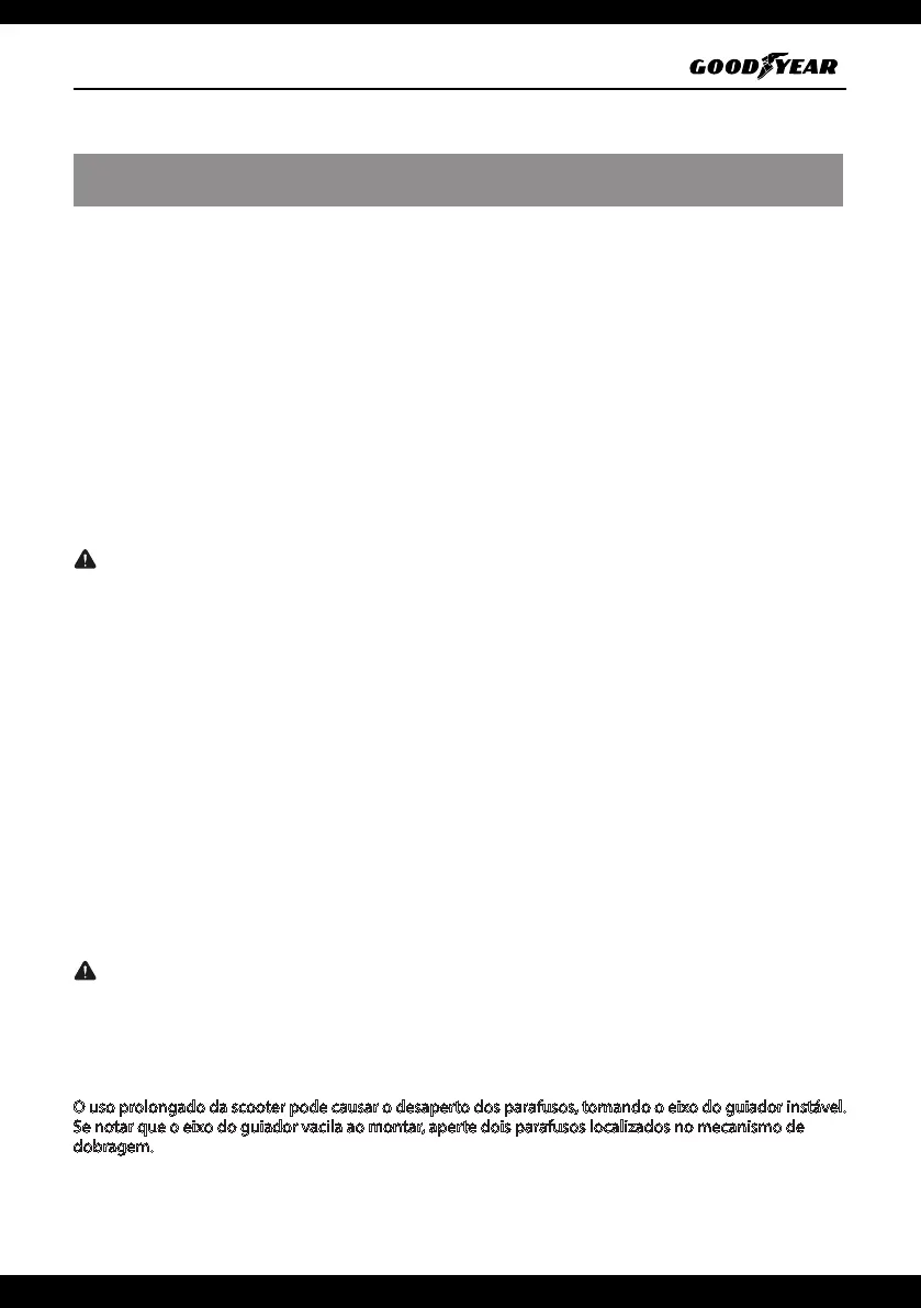 O uso prolongado da scooter pode causar o desaperto dos parafusos, tornando o eixo do guiador instável.