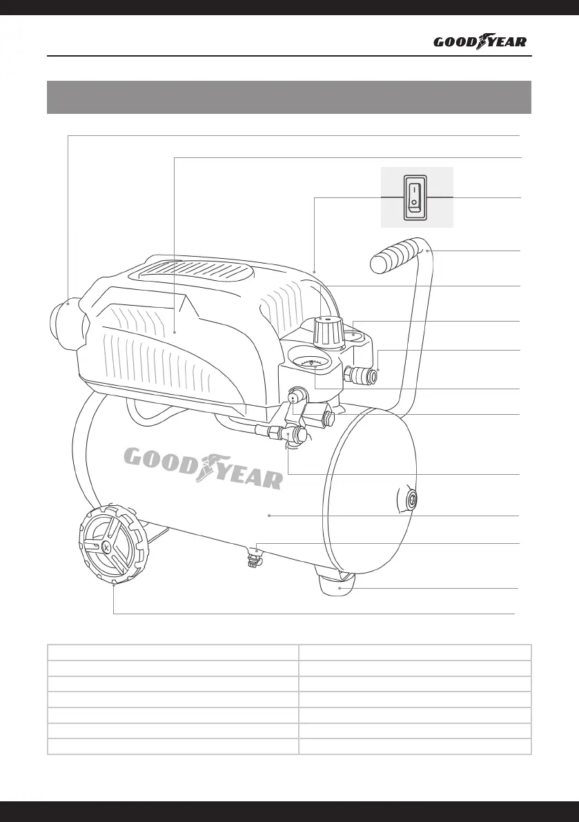 4. Maniglia di trasporto 11. Serbatoio dell'aria pressurizzata (caldaia)
