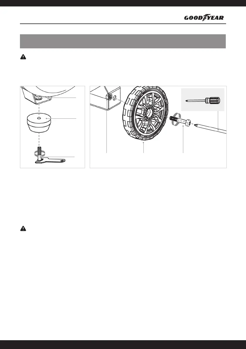 foro del giunto della ruota. Fissare la ruota (E) con il dado (D). Ripetere questi passaggi per montare la