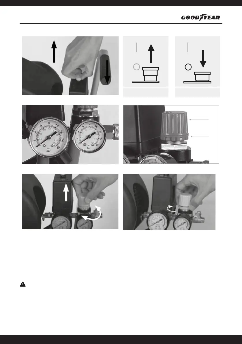 1. Tirando il pressostato verso l'alto, il compressore si avvia e immette aria nel serbatoio attraverso la linea