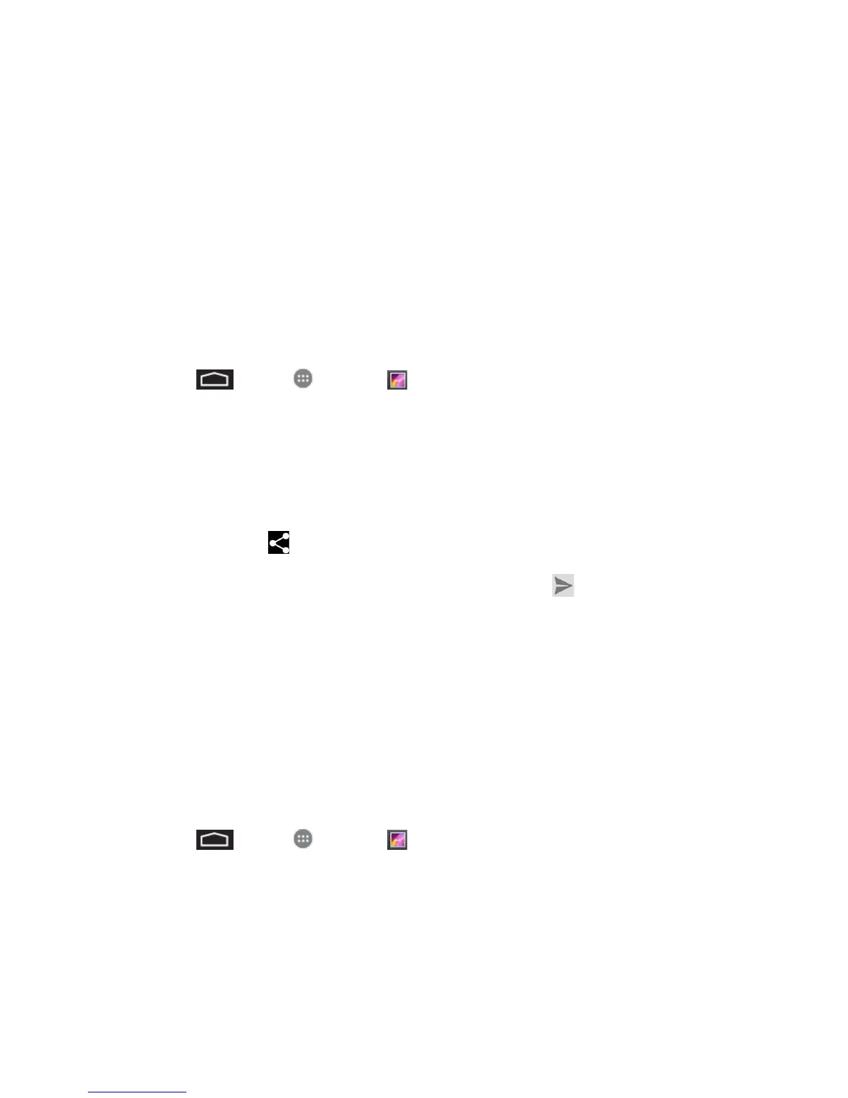 The Gallery application lets you send pictures and videos using email or multimedia messages.