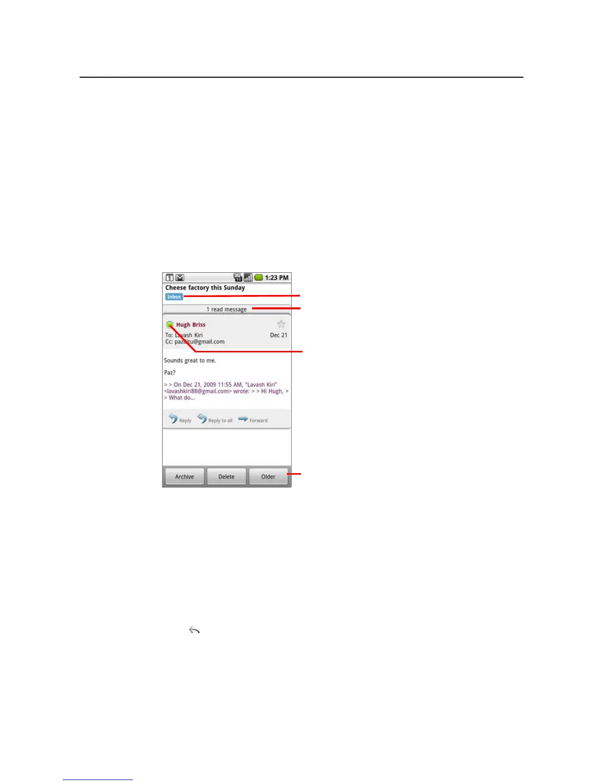 You can also touch Older to read the next oldest unread message in a