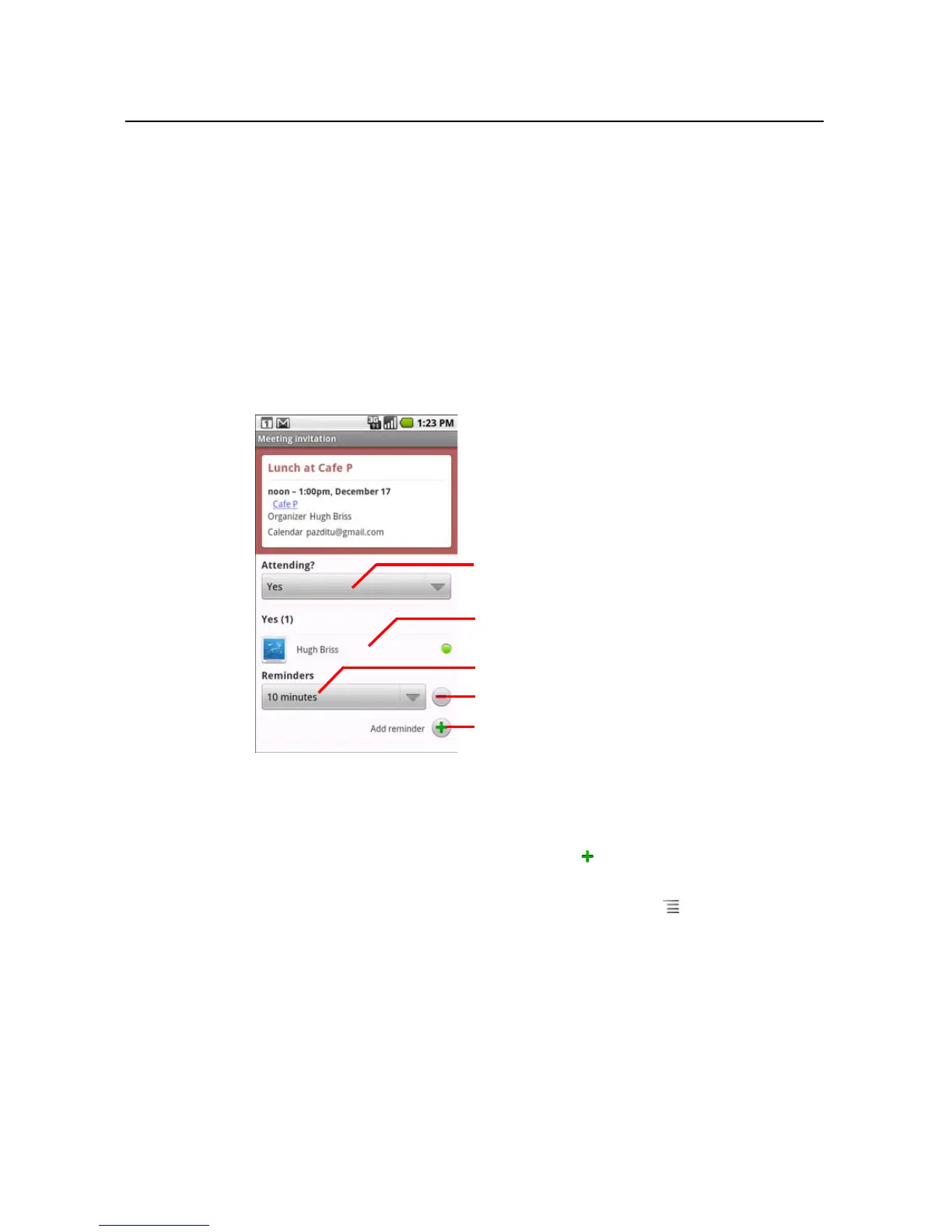 You change any event reminders or touch the plus button to add one. See “Setting