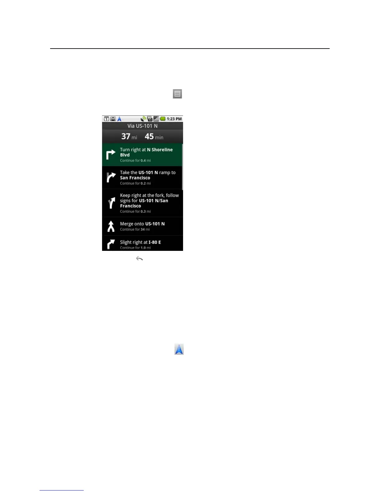 A screen opens with a scrolling list of turn-by-turn directions to your destination.