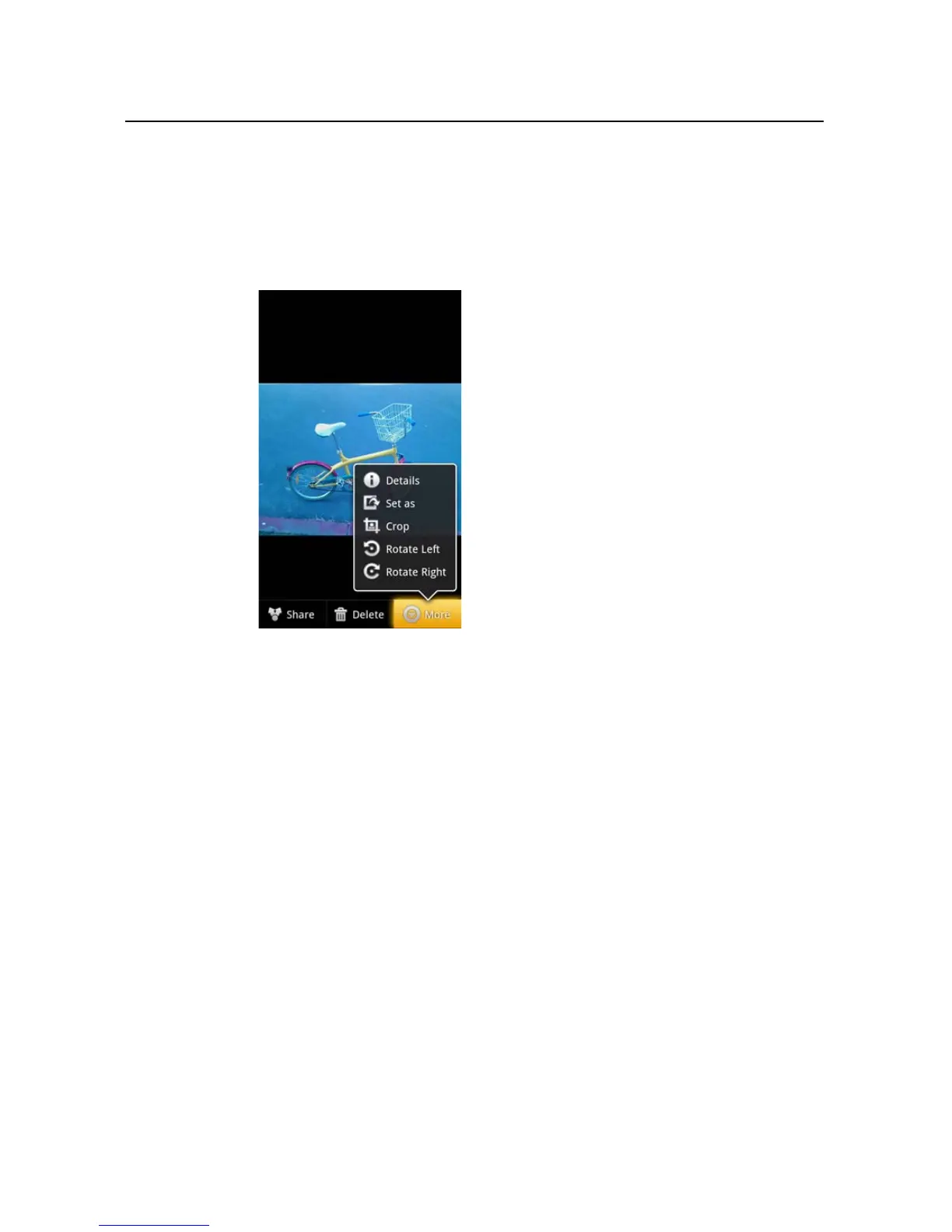 A menu opens with tools for working with the picture.
