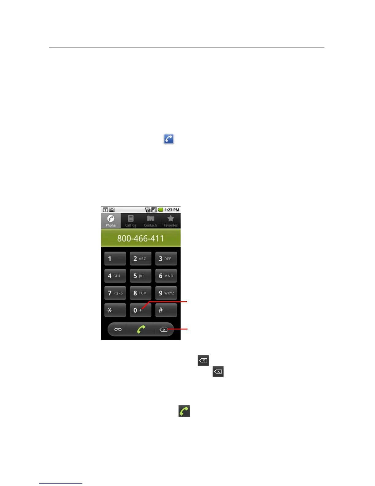 3 Touch the green phone icon to dial the number that you entered.