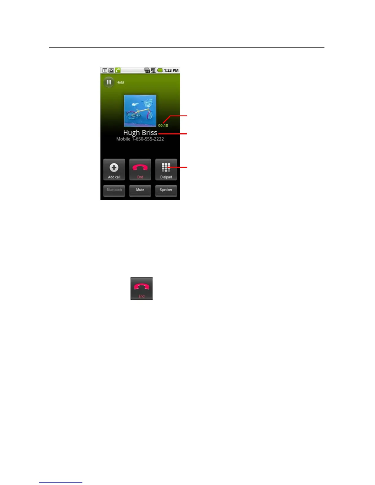 Use the onscreen buttons to place the current call on hold, to add a caller, and for