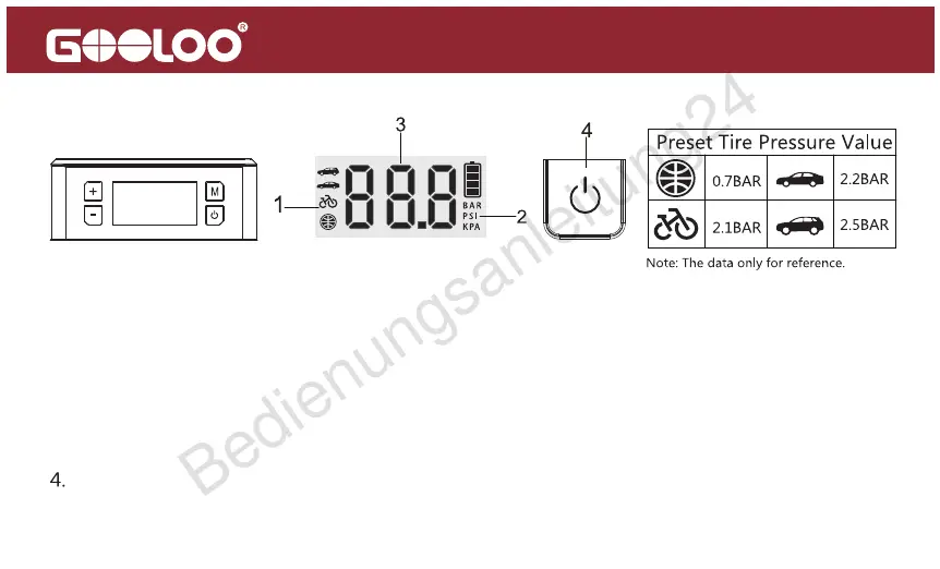3. Press the "M" key again , the current target pressure value flashes, and then press the "+"