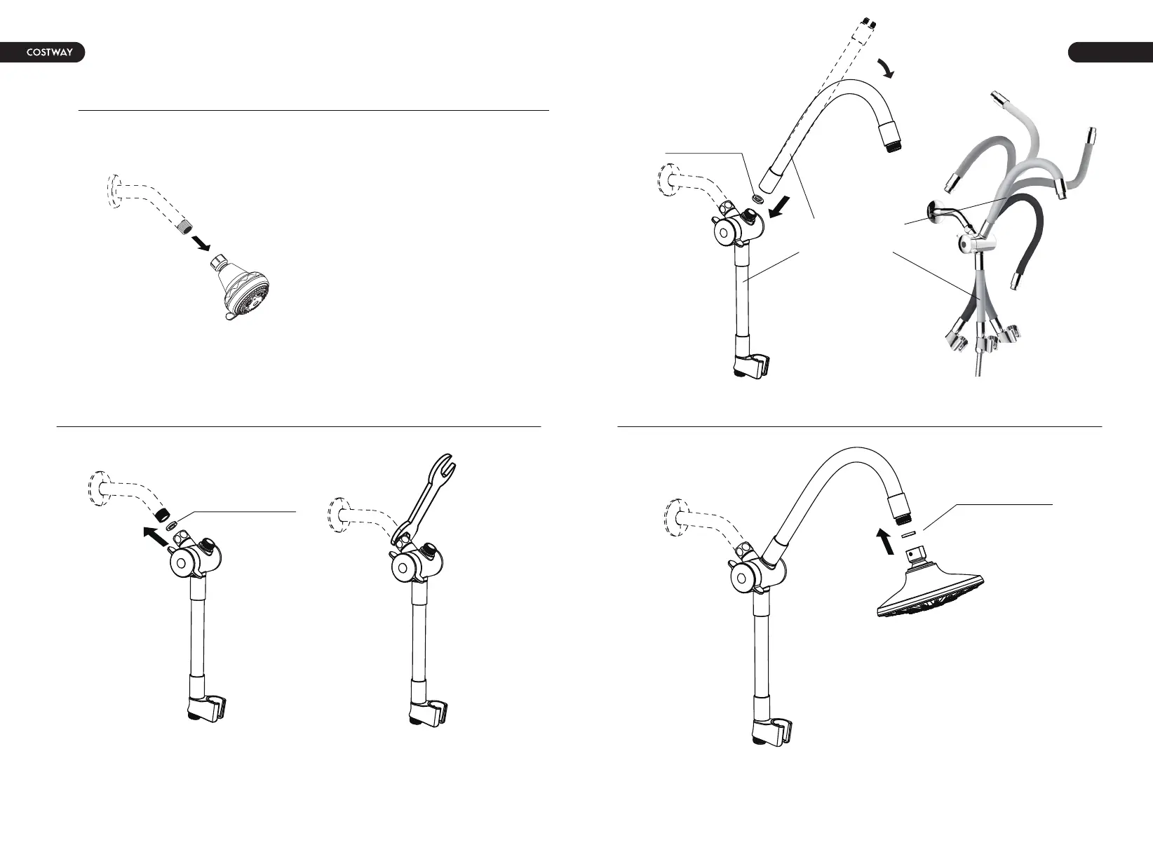 4. Installez la pomme de douche sur le tube supérieur.