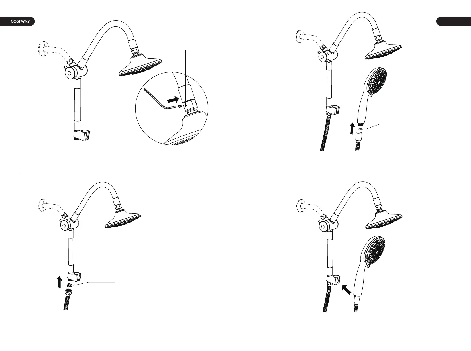 6. Insérez la rondelle dans le tuyau de douche