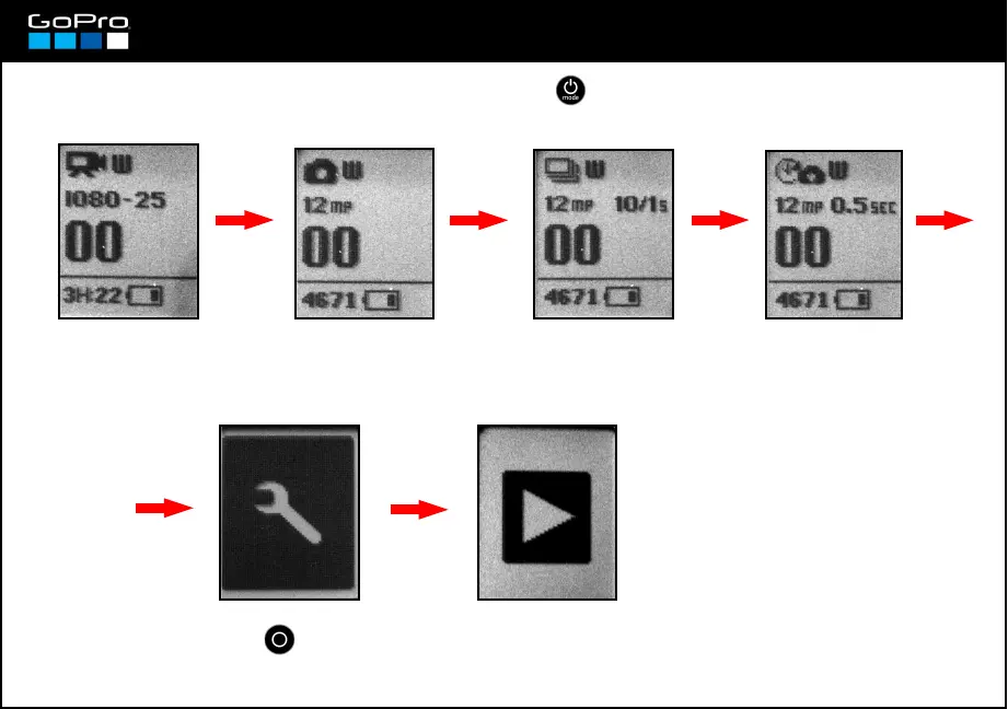 The camera can operate in 4 modes. Pressing POWER we go through them. Beyond them is the