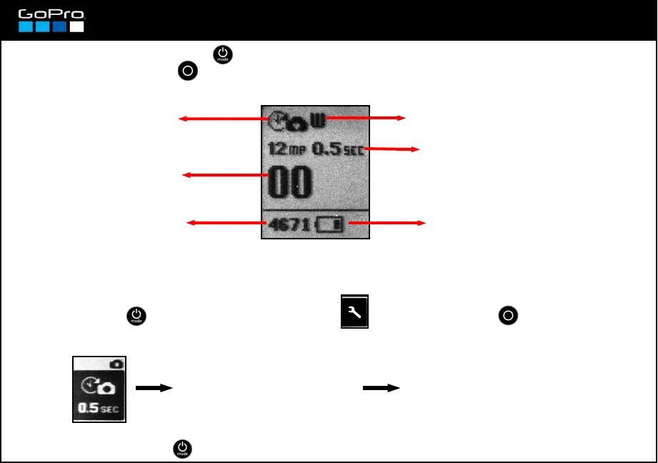 Press POWER button repeatedly to get to Time-Lapse Mode.