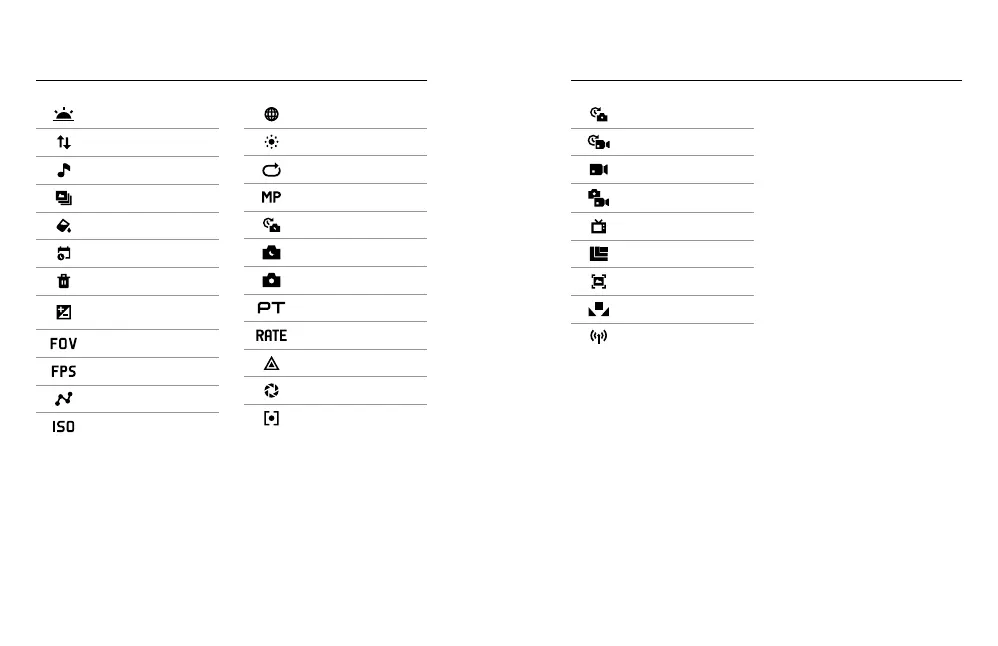 GoPro HERO 5 SESSION - Camera Icons; Camera Icons List