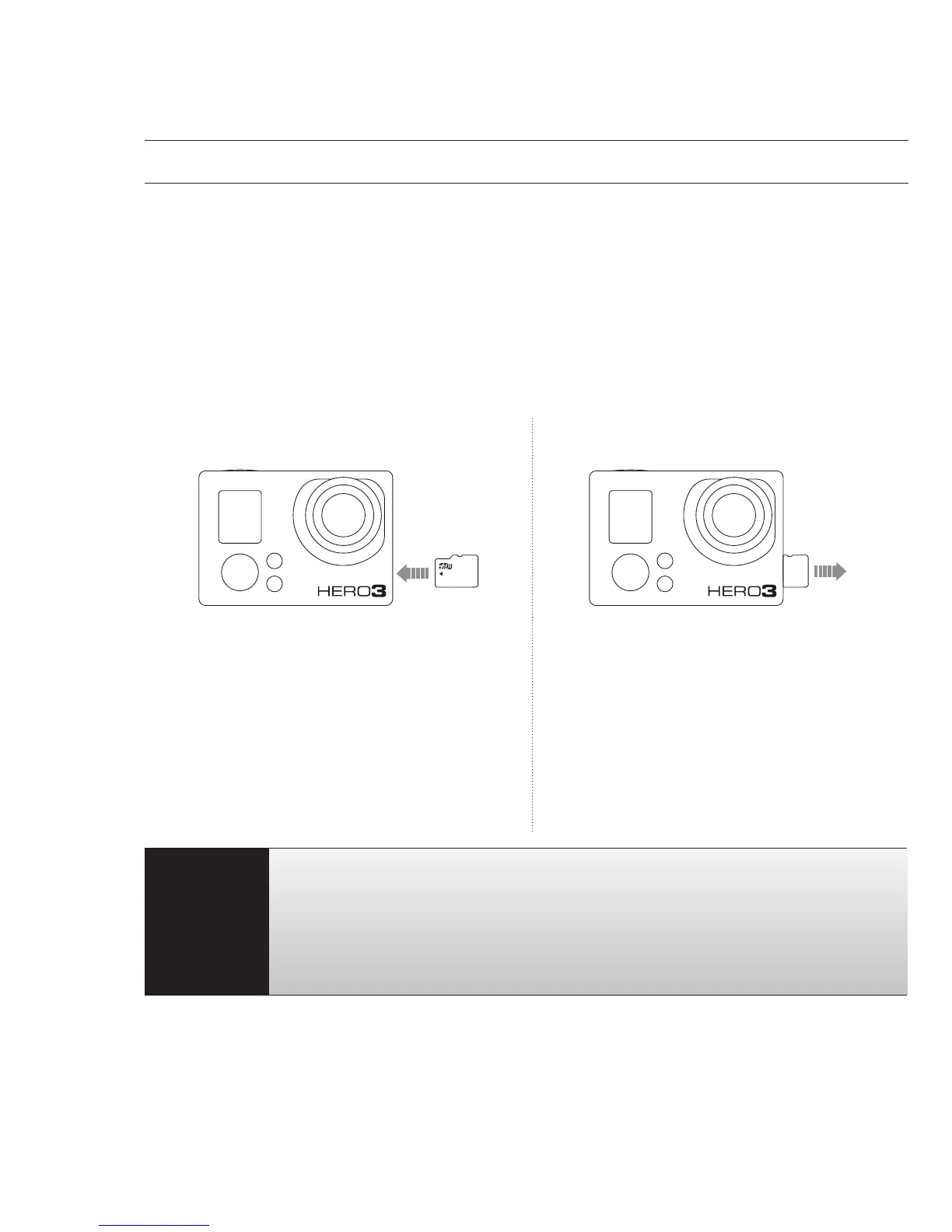 The HERO3 camera is compatible with 2GB, 4GB, 8GB, 16GB, 32GB and 64GB