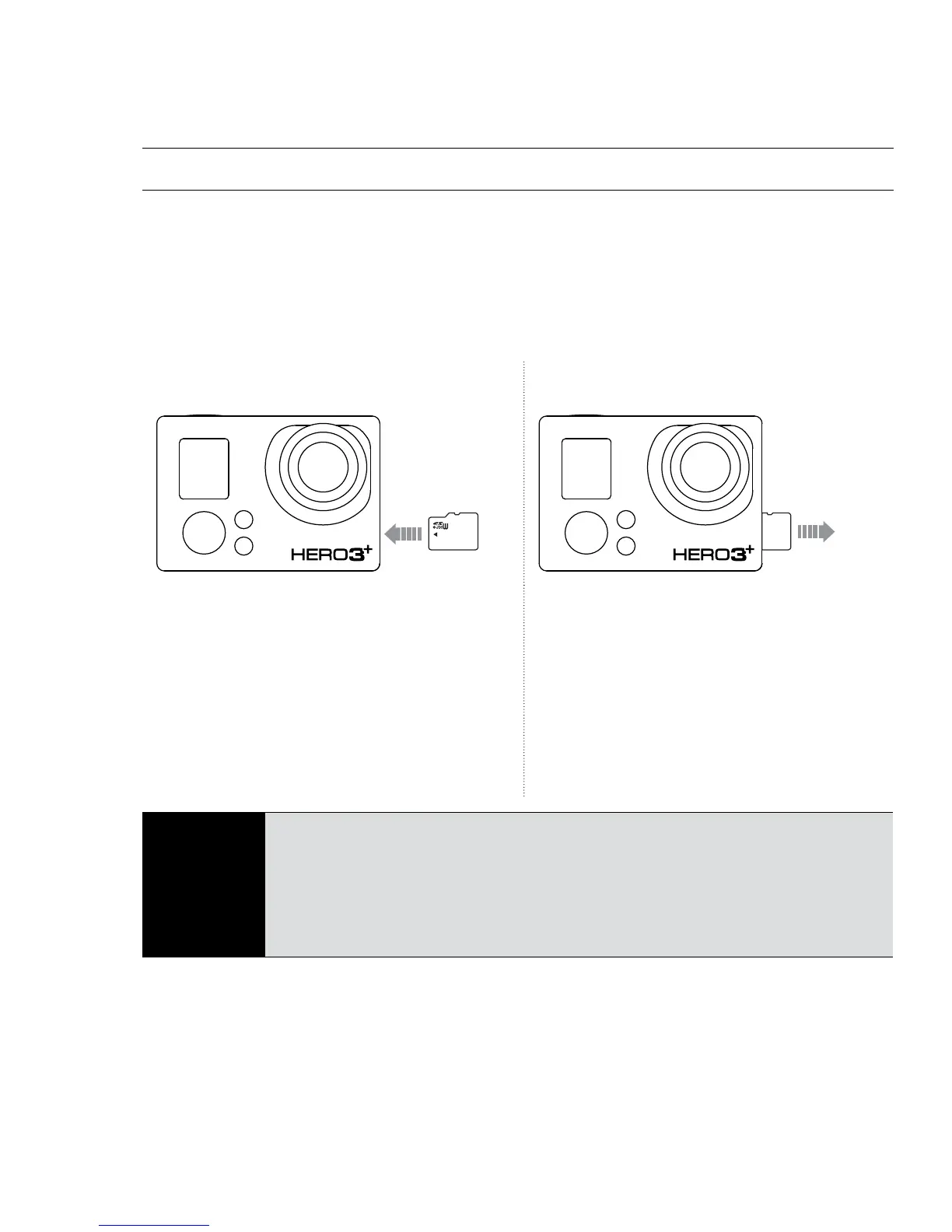 The HERO3+ camera is compatible with 4GB, 8GB, 16GB, 32GB and 64GB
